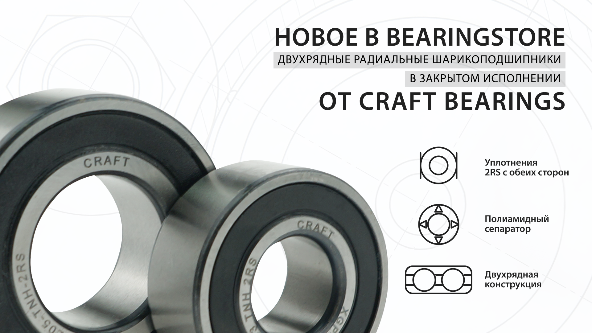 Теперь в bearingstore.ru доступны двухрядные радиальные шарикоподшипники от CRAFT bearings с контактными уплотнениями 2RS: